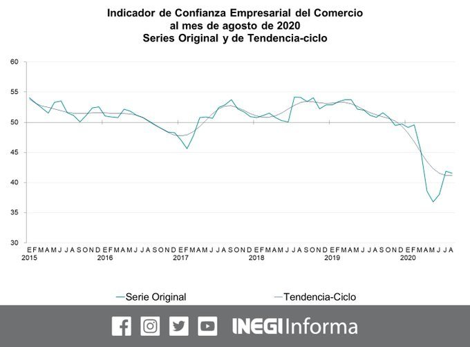 Al comparar con agosto de 2019, en las manufacturas la merma es de 11.3 puntos, en el comercio es de 9.3 puntos y en la construcción de 8.3 puntos. Los tres indicadores se encuentran por debajo de las 50 unidades; esto implica que el pesimismo domina.