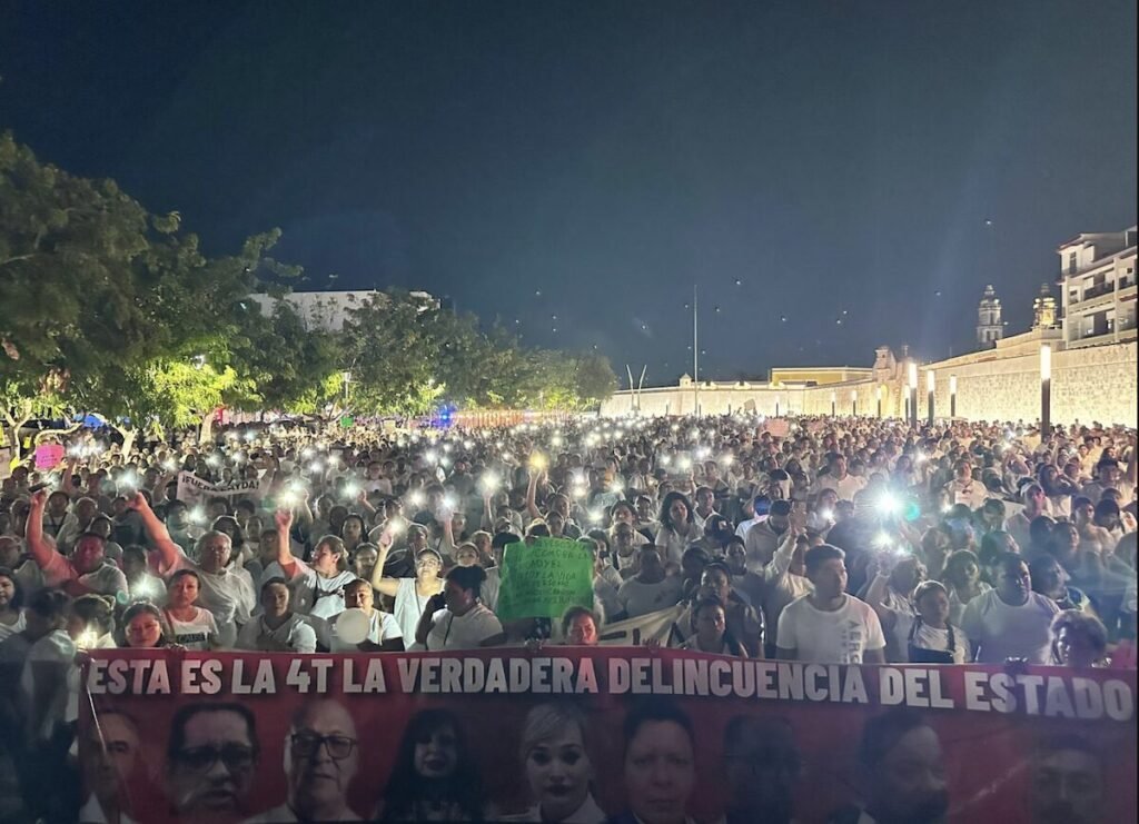 Entre los manifestantes, que incluían familiares de policías y ciudadanos solidarios, se escucharon consignas como “fuera Marcela” y “somos pueblo, no partido“, exigiendo la renuncia de Muñoz Martínez, así como calificativos como “traidora” hacia la gobernadora Layda Sansores, mientras clamaban: “El pueblo pone y el pueblo quita“. Se subrayó que la destitución de la secretaria de Seguridad Pública es una demanda de justicia y no un capricho, como ha sugerido la mandataria.