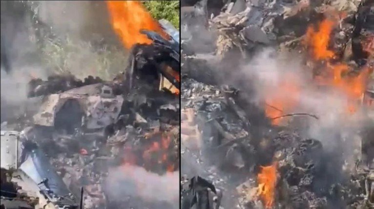 En redes sociales circulan videos que los pobladores del lugar tomaron tras la tragedia. En las imágenes se observa a las dos avionetas destruidas y los restos de las mismas envueltos en llamas