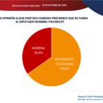No solamente eso, el 65.2 % de los encuestados, es decir, una vez más en promedio 7 de cada 10, aseguraron que el partido al cual debió incorporarse el ex atleta, para que su salida del PAN sea más coherente, debió ser Movimiento Ciudadano (MC), y solo el 34.8%, una vez más, 3 de cada 10 vieron bien que se haya ido a Morena.