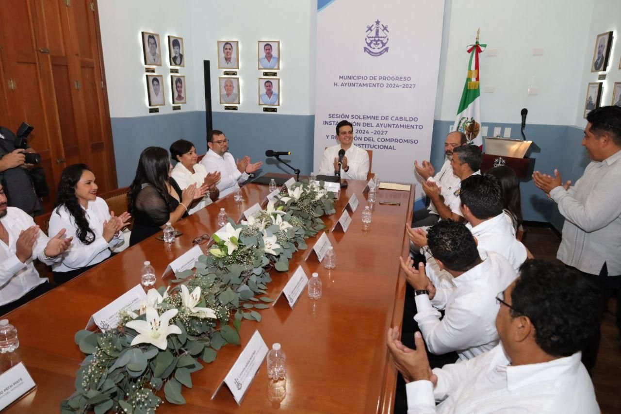 Progreso, Yucatán.- Erik Rihani asumió oficialmente el cargo de Alcalde de Progreso para el periodo 2024-2027 en una ceremonia que reunió a los 11 regidores del Cabildo, representando diversas fuerzas políticas. También se destacó la elección de José Efraín Escalante como Secretario Municipal.