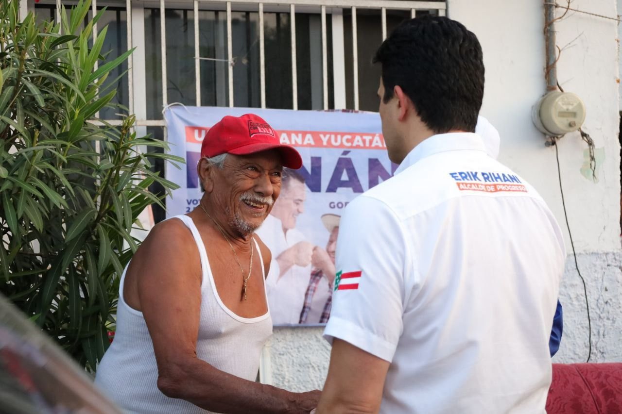 Norma Matilde Campos Escalante, vecina de la colonia Feliciano Canul Reyes, recibió en su hogar al candidato Erik Rihani a quién le agradeció por el apoyo que le brindó meses atrás, cuando se encontraba delicada de salud. “Tras una operación y una recaída en mi salud, tuve la necesidad de solicitarle una silla de ruedas y me la entregaron muy rápido, ha sido la primera vez que solicito un apoyo de este tipo y Erik Rihani me cumplió”, comentó doña Norma.