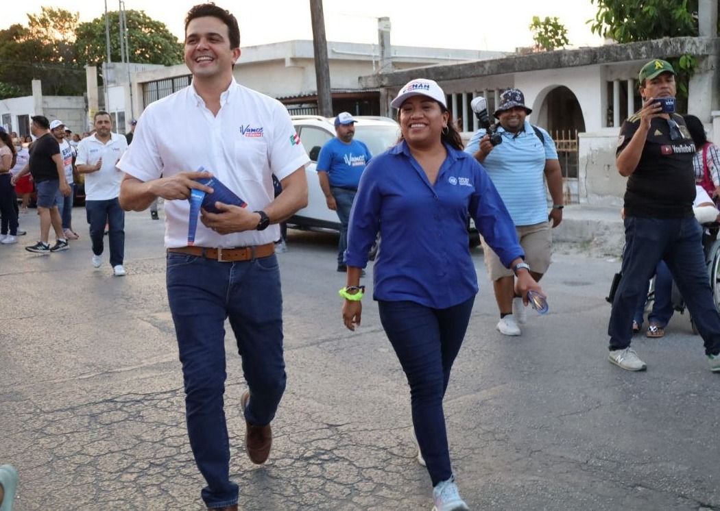 Progreso, Yucatán, 23 de abril de 2024.- Este martes el candidato por el Partido Acción Nacional a la alcaldía del Puerto de Progreso, Erik Rihani González, recorrió la colonia Feliciano Canul Reyes, acompañado de la consejera nacional del PAN, Yesenia Polanco Ross, quien acudió en representación del candidato a la gubernatura del estado, Renán Barrera Concha. También asistieron integrantes de su planilla de regidores y una multitud de simpatizantes, quienes arroparon y demostraron su total respaldo durante toda la caminata al candidato.