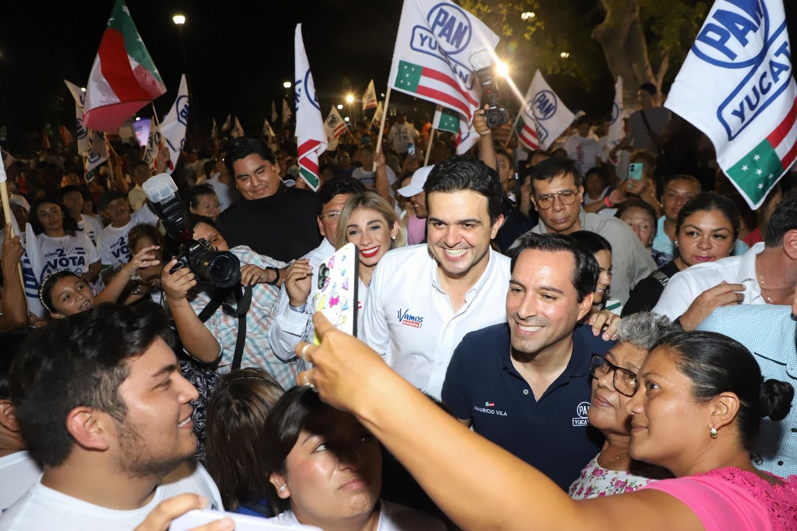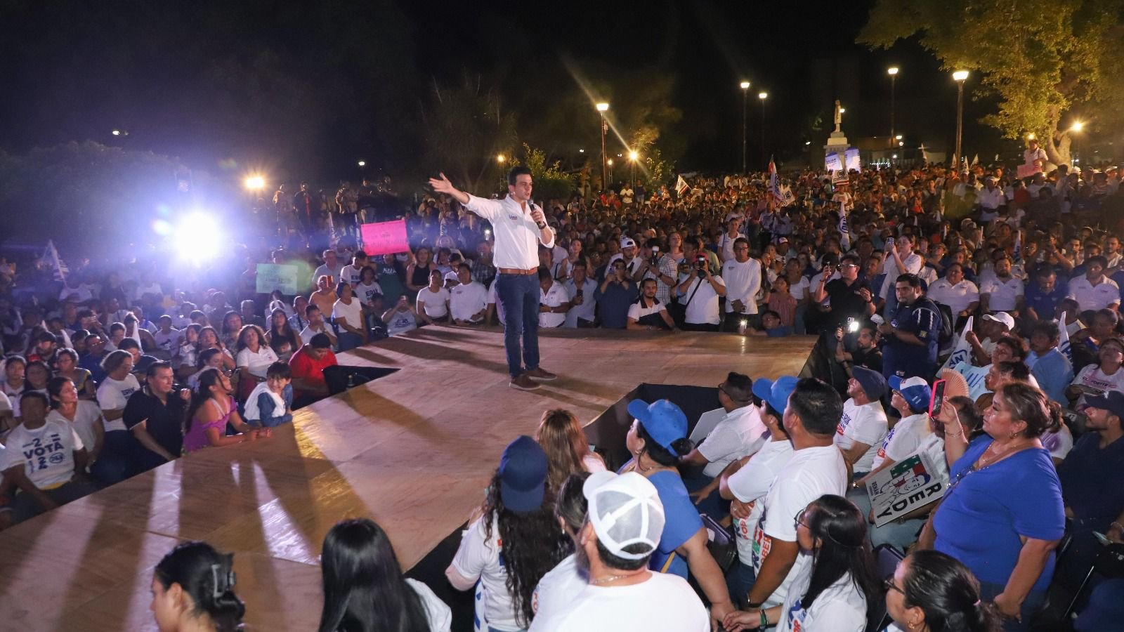 El evento tuvo lugar en el parque Hidalgo de esta ciudad que lució completamente abarrotado de simpatizantes quienes en todo momento corearon los nombres de los candidatos haciéndoles sentir su total respaldo al proyecto que encabezan y que busca continuar trabajando por la ruta de cambio y transformación trazada por los buenos gobiernos de Acción Nacional como el de Mauricio Vila Dosal.