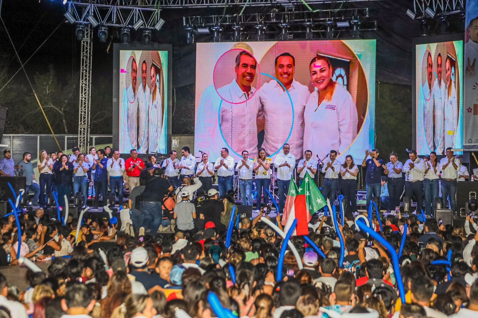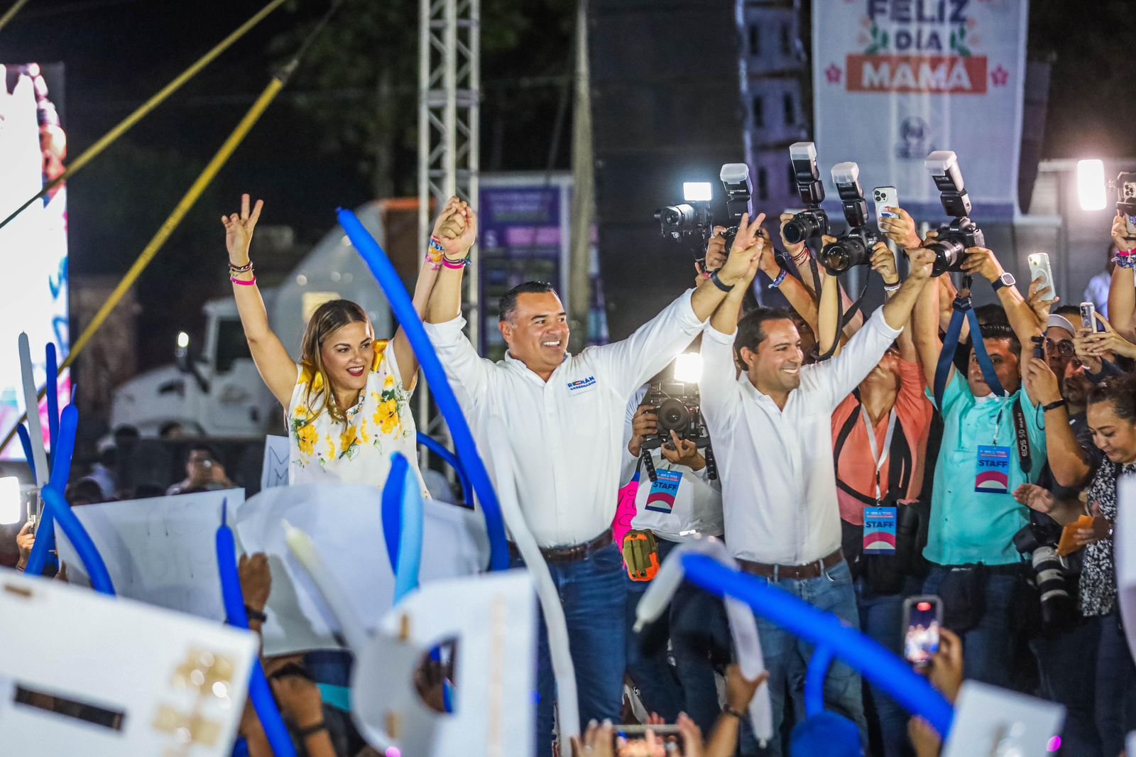 Mérida, Yucatán, a 10 de mayo de 2024 – La explanada de San Roque fue el punto de encuentro de miles de personas para celebrar el día de las madres en un evento encabezado por Renán Barrera, Cecilia Patrón y Mauricio Vila, quienes estuvieron acompañados por Víctor Hugo, así como las y los candidatos de la coalición “Fuerza y Corazón por México”.