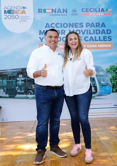 Renán Barrera Concha, candidato a la gubernatura de Yucatán por el PAN, PRI y Nueva Alianza, y la candidata a la alcaldía de Mérida, Cecilia Patrón Laviada, propusieron un proyecto de reingeniería vial en la capital yucateca, para mejorar la movilidad inclusiva, armoniosa y sostenible dónde el peatón y el ciclista sean primero y continúe, mejorando y promoviendo el uso de transporte público.