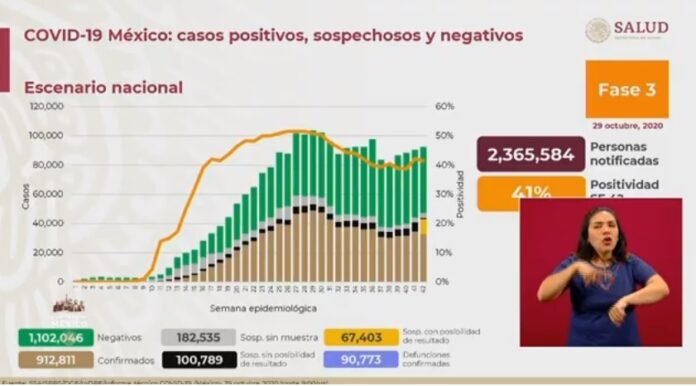 El subsecretario de Prevención y Promoción de la Salud, Hugo López-Gatell informó que los casos sospechosos en espera de un resultado de laboratorio suman 67 mil 403. Se han notificado 2 millones 365 mil 584 casos de la enfermedad y de las pruebas que se han realizado, un millón 102 mil 46 han tenido un resultado negativo.