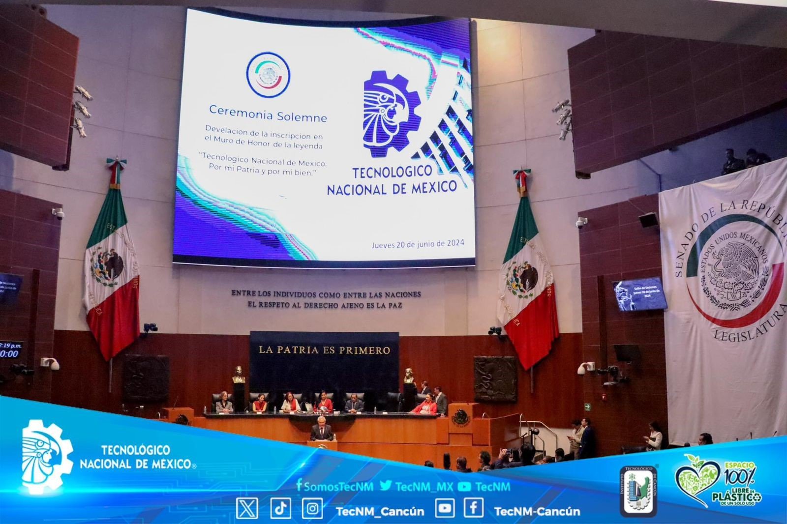 El memorable acto efectuado en el recinto del Senado de la Repรบblica, ante la presencia de la Secretarรญa de Educaciรณn Pรบblica, Leticia Ramรญrez Anaya, la presidenta de la Mesa directiva del Senado de nuestra naciรณn, Ana Lilia Rivera Rivera, el director General del #TecNM Ramรณn Jimรฉnez Lรณpez, y el senador Arturo del Carmen Moo Cahuich, autor de la propuesta para inscribir el nombre del #TecNM en el Muro de Honor, asรญ como distinguidos funcionarios del sector Educativo y del poder Legislativo.
