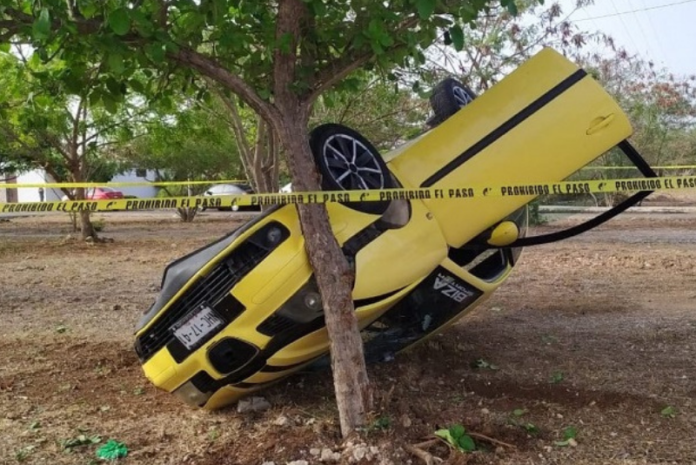 La conductora de un Ibiza perdió el control de su volante y voló en el fraccionamiento de “El Parque, cerca de Pacbtún.